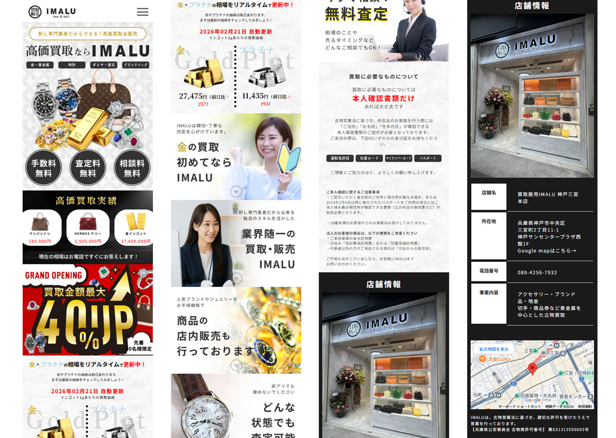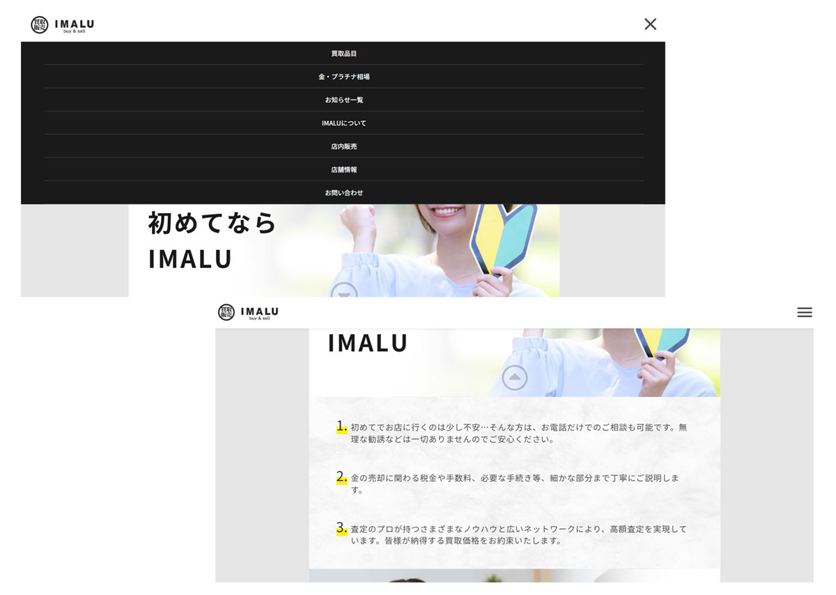 貴金属の買取販売店舗「IMALU」様のWordPressサイトのコーディングを担当させて頂きました。